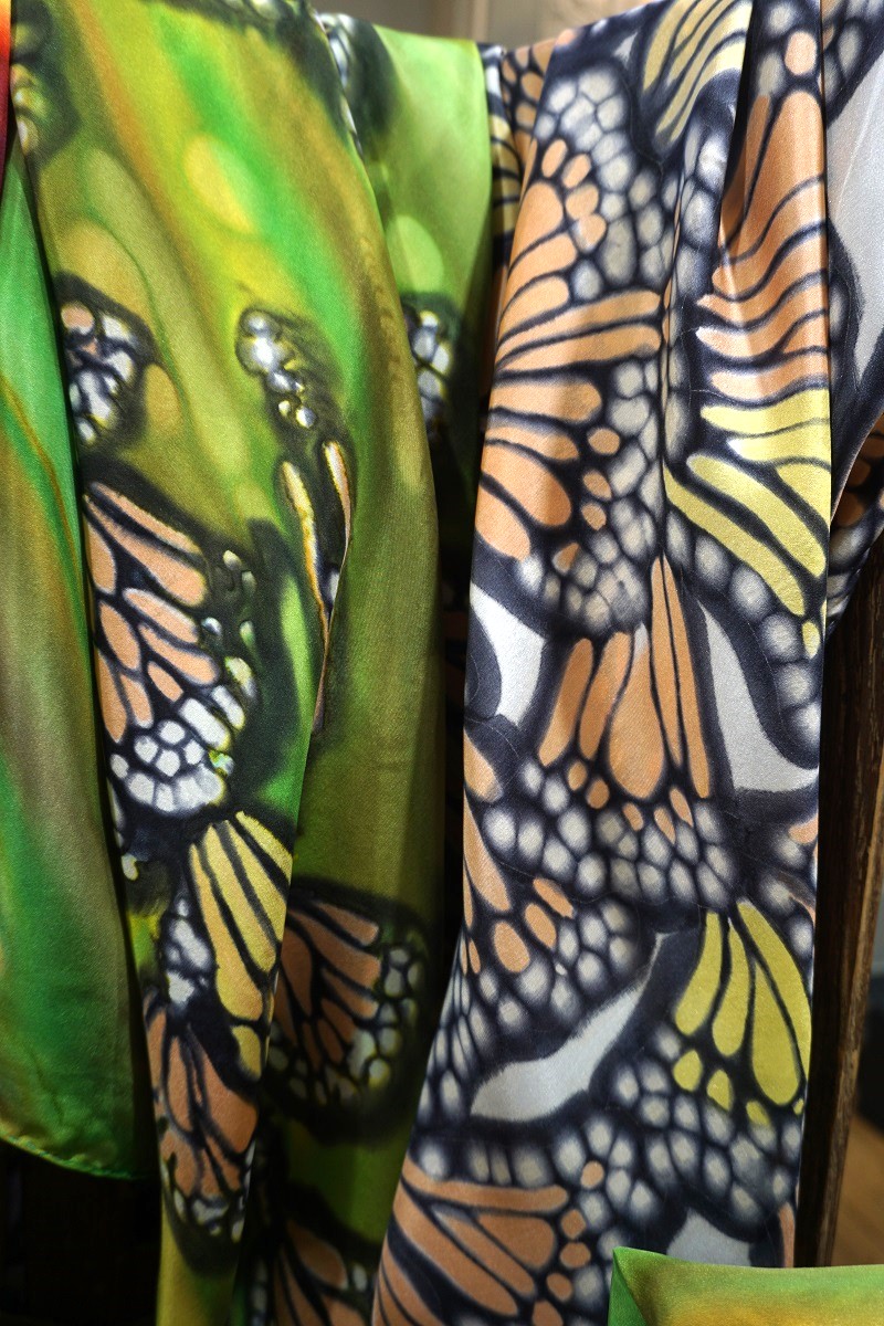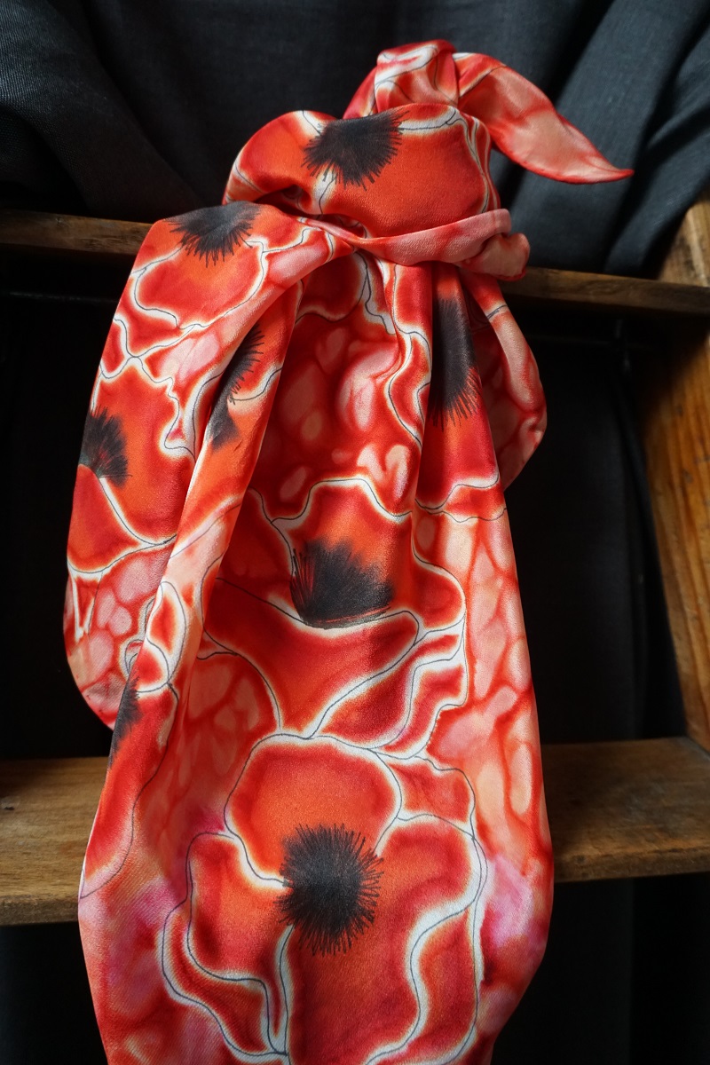 Créatrice de carrés de soie naturelle, d'écharpes et autres accessoires de mode (ombrelles, éventails,...), Pièces uniques, fabriquées en France.